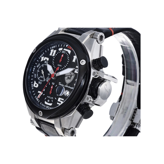 ساعت مچی عقربهای «لامبورگینی» مدل «Lamborghini TL-G-7750» از مدلهای کلاسیکاسپرت تولیدمحدود یا Limited Edition این برند ایتالیایی است. این مدل که در سری «Gran Premio» دستهبندی میشود، دارای قابلیتهای اسپرت متعددی است که هم از نظر کارایی و هم از نظر ظاهری به جذابیت ساعت افزوده است. ساعت TL-G-7750 از موتوری اتوماتیک و سوییسی برخوردار است که به موتور «Valjoux 7750» معروف است. این مدل اتوماتیک و حرکتی قابلیتهایی را هم در اختیار کاربر قرار میدهد که با توجه به مکانیزم عملکرد اهمیت و جذابیتی دوچندان دارد. این قابلیتها کرنوگراف یا زمانسنج و یک تاریخشمار است. کرنوگراف با صفحات فرعی یا شمارشگرهایی جذاب همراه بوده و تاریخشمار در موقعیت ساعت چهار، شمارهی روز ماه را در قابی دایرهای نمایش میدهد. این ساعت لوکس از برند لامبورگینی قابی با عرض 53.5 میلیمتر دارد که با در نظر گرفتن تاج کوک ابعادی متوسط و قابلقبول به نظر میرسد. در حاشیهی صفحه شاهد ارقامی هستیم که قابلیت تاکیمتر یا زمانسنج را هم به همراه دارند. طراحی فوقالعاده لوکس و زیبای بند چرمی با دوخت قرمز و قفل فلزی سگکی قلابدار هم ترکیب کاملا متناسبی برای این ساعت لوکس محسوب میشود. برای قلاب یا قسمت اصلی قفل، شاهد طراحی لوگوی اصلی لامبورگینی یا همان گاو معروف در طرحی سهوجهی هستیم که به زیبایی این بند و در کل ساعت افزوده است. شیشهی ضدخش ساعت از جنس یاقوت یا سافایر ساخته شده و بدنهی آن تا فشار 100متر یا 10بار در برابر آب مقاومت دارد که نگرانی مربوط به نفوذ آب در تقریبا تمام موقعیتهای معمول روزمره نظیر شستوشوی دست را از بین میبرد. در مجموع این مدل را میتوان یکی از شیکترین ساعتهای لوکس برشمرد که در کنار تمام مشخصات بارز کیفی و فنی، تولیدمحدود بودن آن هم به ارزش و جذابیت آن به عنوان ساعتی خاص و لاکچری افزوده است.